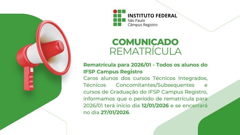 Rematrícula para 2026/01 - Todos os alunos do IFSP Campus Registro