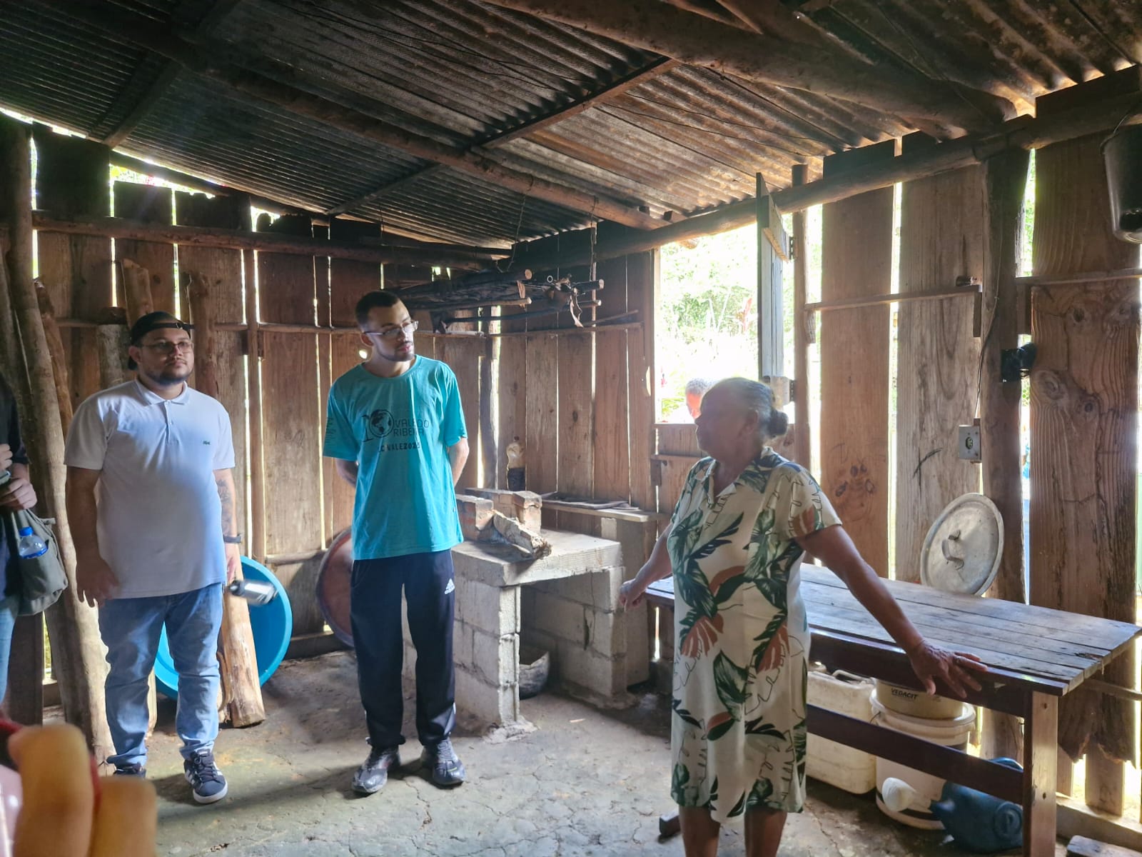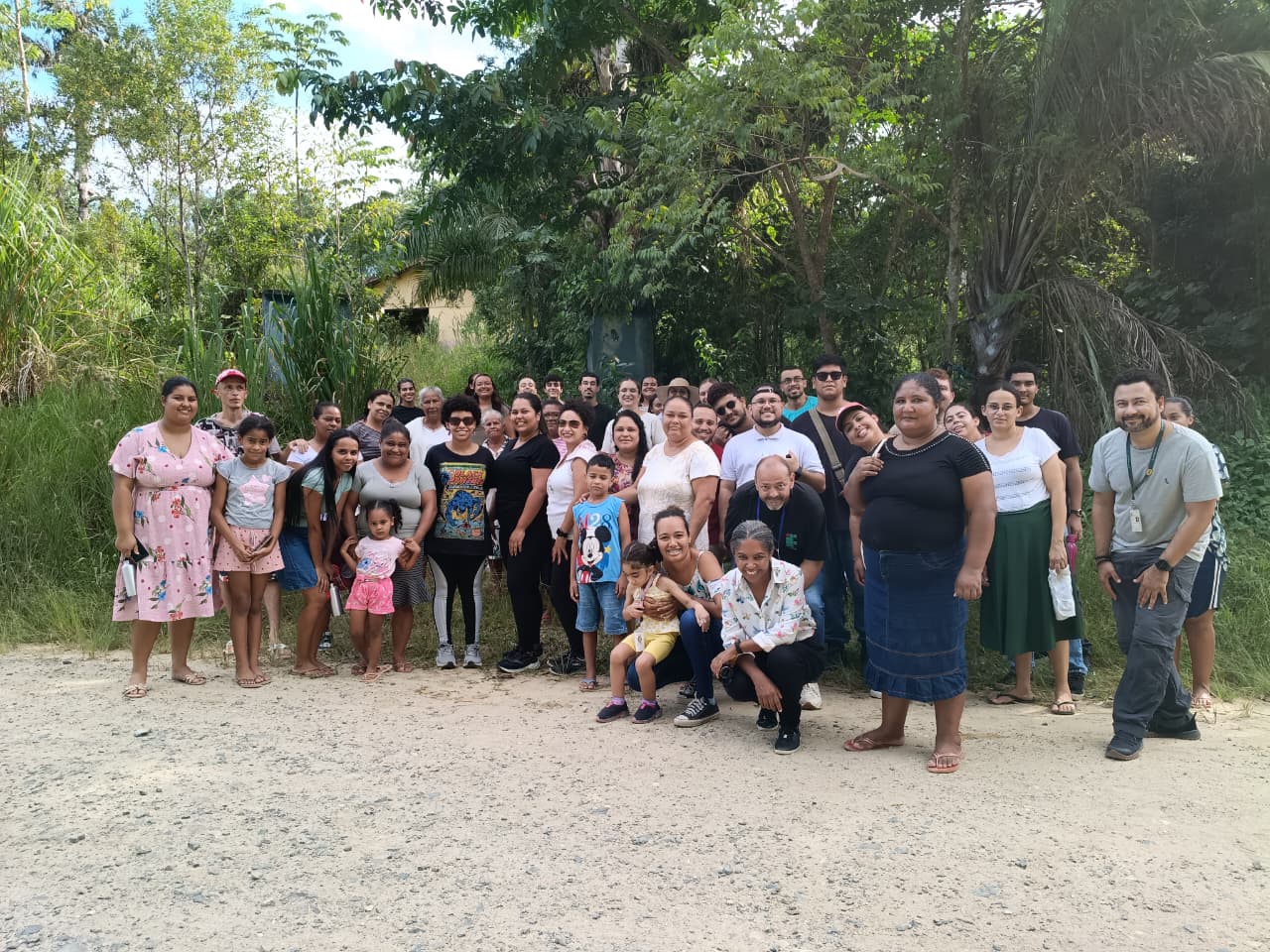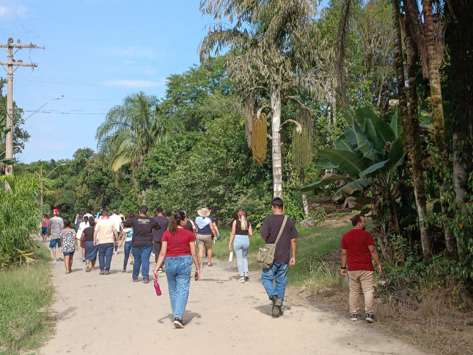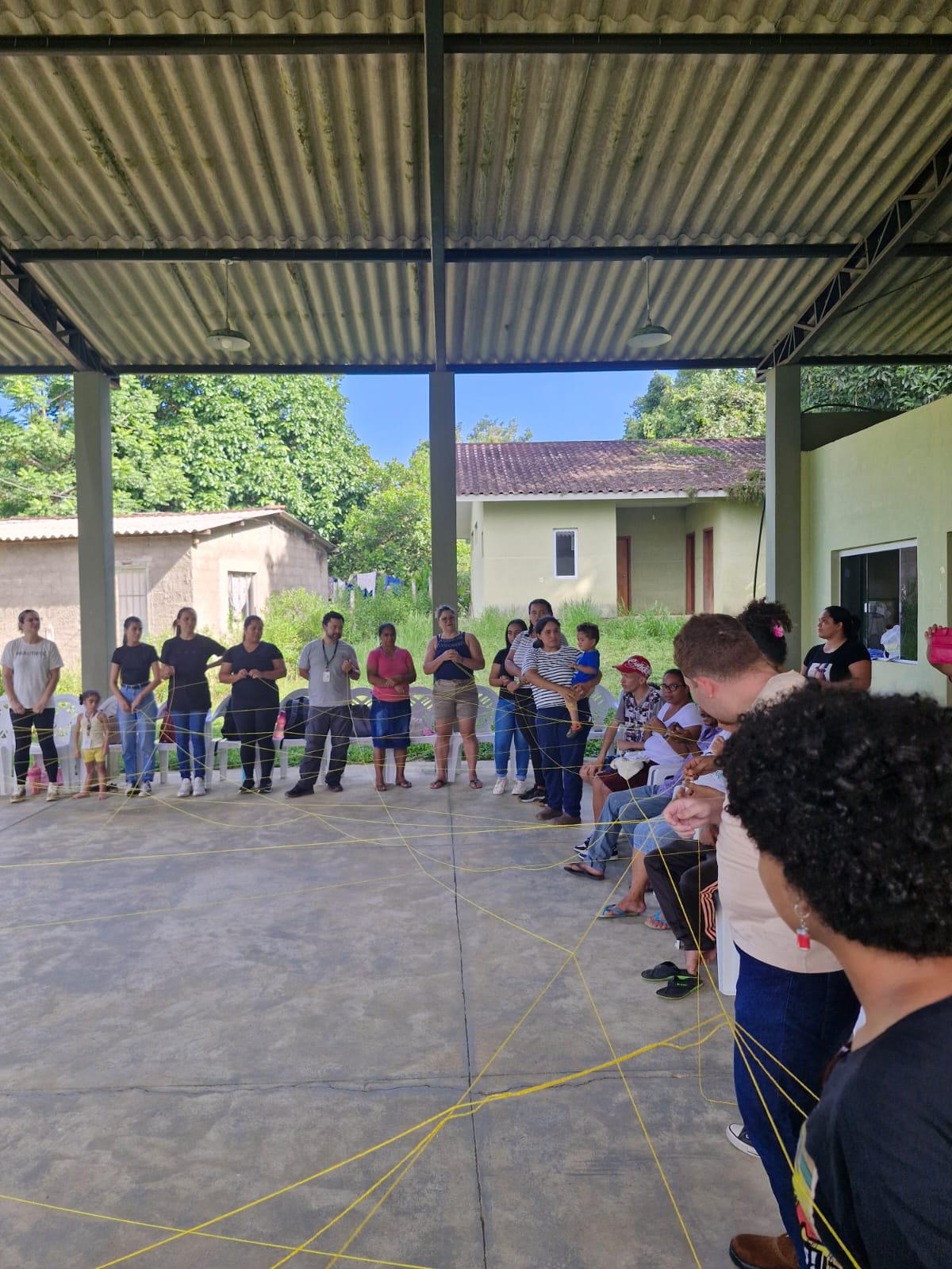 A atividade iniciou por meio de uma dinâmica de teias, representando a força das conexões entre saberes e pessoas. Em seguida, os/as estudantes mergulharam na memória coletiva ao visitar a escola desativada, símbolo da luta pela educação escolar quilombola, e a casa da farinha, espaço de tradição e trabalho comunitário que mantém viva a identidade cultural da comunidade.