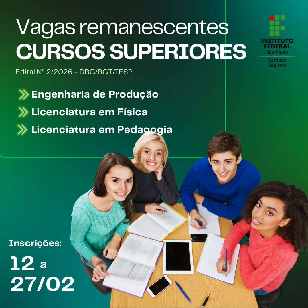 O Instituto Federal de Educação, Ciência e Tecnologia de São Paulo (IFSP), por meio do Campus Registro, publicou o Edital nº 1/2026, que trata da...